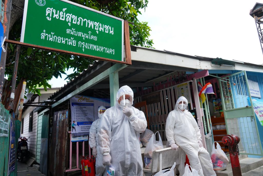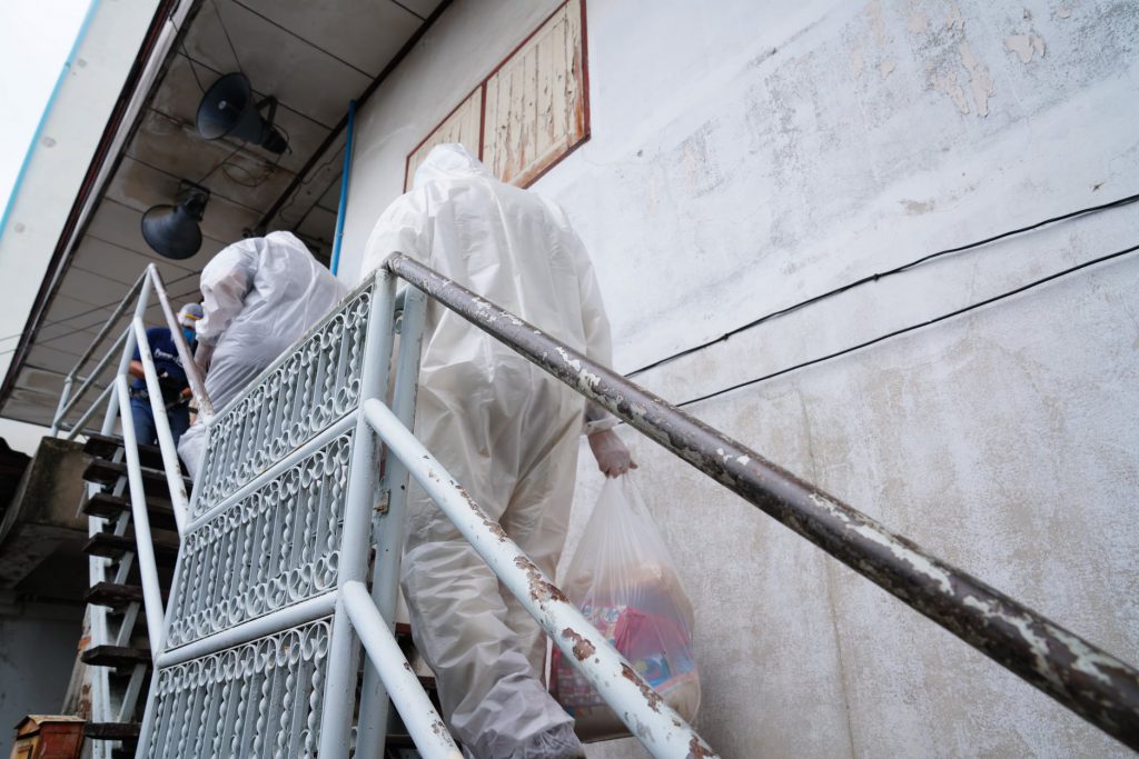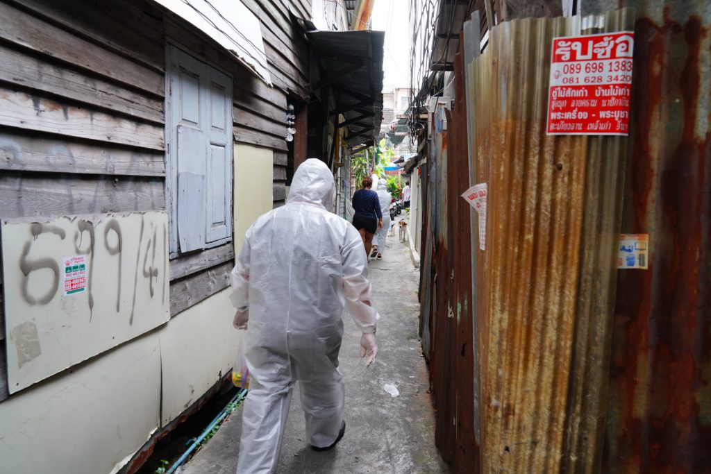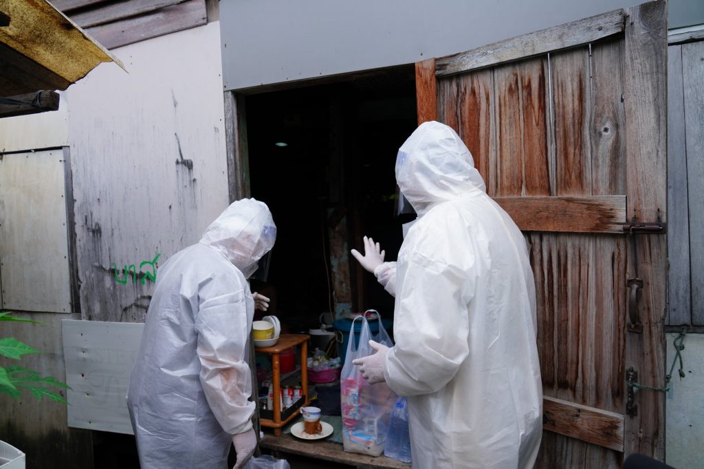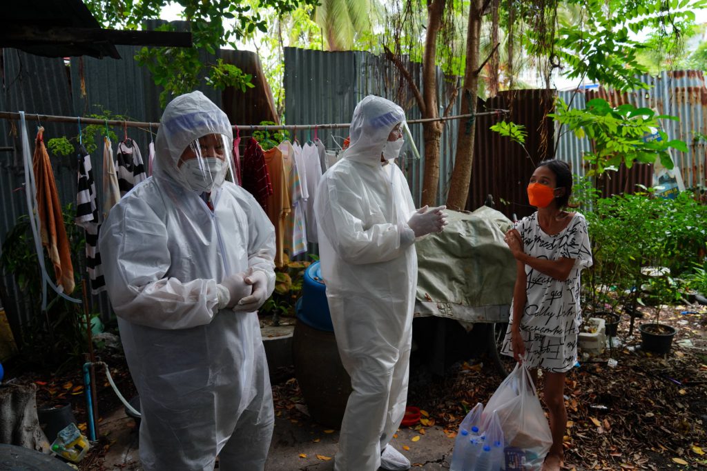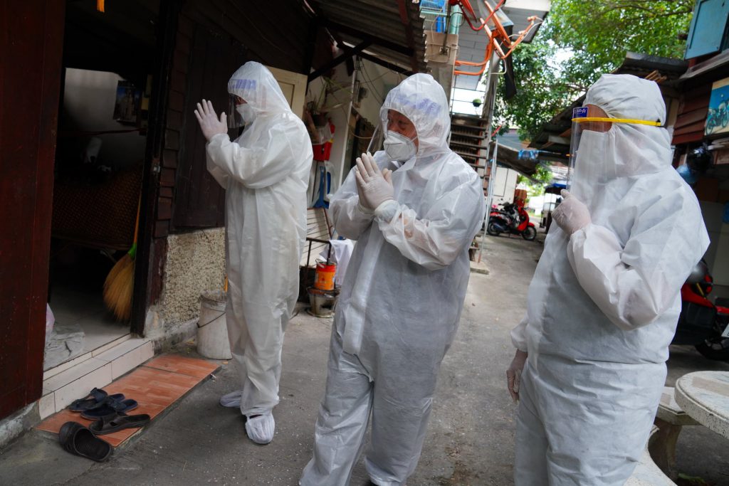 16 สิงหาคม 2021 เวลา 13.00 น. มงซินญอร์ วิษณุ ธัญญอนันต์ รองเลขาธิการสภาประมุขบาทหลวงโรมันคาทอลิกแห่งประเทศไทย และ คุณพ่อไพรัช ศรีประเสริฐ ผู้ช่วยเลขาธิการสภาฯ ฝ่ายสังคม (คาริตัสไทยแลนด์) นำทีมงานเจ้าหน้าที่จากคาริตัสไทยแลนด์ และสื่อมวลชนคาทอลิกประเทศไทย สวมชุด PPE ลงพื้นที่สีแดงเข้มบริเวณชุมชนซอยนนทรี – เขตยานนาวา และชุมชนพื้นที่ใกล้เคียงอาคารสภาประมุขบาทหลวงโรมันคาทอลิกฯ เพื่อมอบถุงยังชีพให้กับผู้ประสบภัยโควิด-19
