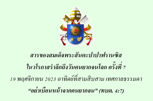สารของสมเด็จพระสันตะปาปาฟรานซิส ในวโรกาสรำลึกถึงวันคนยากจนโลก ครั้งที่ 7