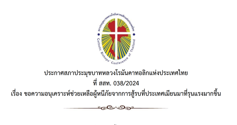 ประกาศ สภาประมุขบาทหลวงโรมันคาทอลิกแห่งประเทศไทย เรื่อง ขอความอนุเคราะห์ช่วยเหลือผู้ประสบภัยแผ่นดินไหว เมียนมา