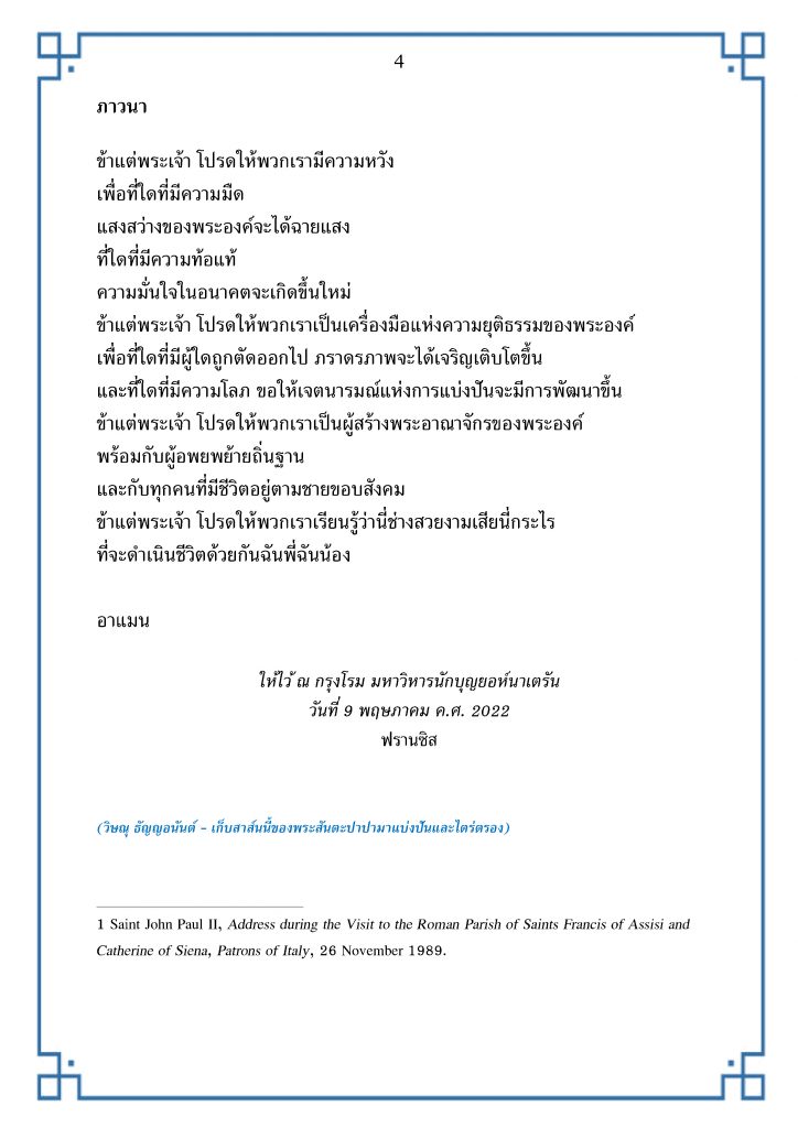 (วิษณุ ธัญญอนันต์ – เก็บสาส์นนี้ของพระสันตะปาปามาแบ่งปันและไตร่ตรอง)